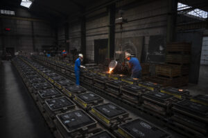 Het bronsgietwerk is van hoge kwaliteit, dankzij de technische expertise, in-house vormmakerij, afwerkingsunit en de geautomatiseerde precisieproductie op onze Omega lijn. De gietvormen garanderen een hoge thermische geleidbaarheid bij de productie van het glas, waardoor de glasproducent aanzienlijk bespaart. DSPC is dé referentie in bronsgietwerk voor glasmallen!